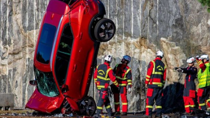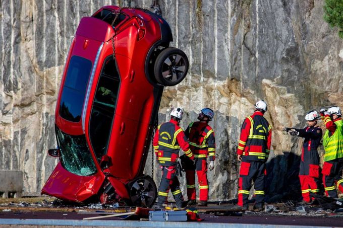 Ek olarak, İsveç kurtarma hizmetleri Volvo’ya davet edildi. Gerçek şu ki, bu tür şiddetli çarpışmalarda, yolcular genellikle arabada mahsur kalıyor. Bunları çıkarmak için, metal için hidrolik makaslar da dahil olmak üzere çeşitli özel aletler kullanmanız gerekir. Kazazedelerin yaşamı genellikle kurtarıcıların ne kadar hızlı hareket ettiğine bağlıdır. İsveçli uzmanlar, insanları tahliye etmek için daha etkili yollar geliştirmek için gerçekçi koşullar altında eğitim aldılar.