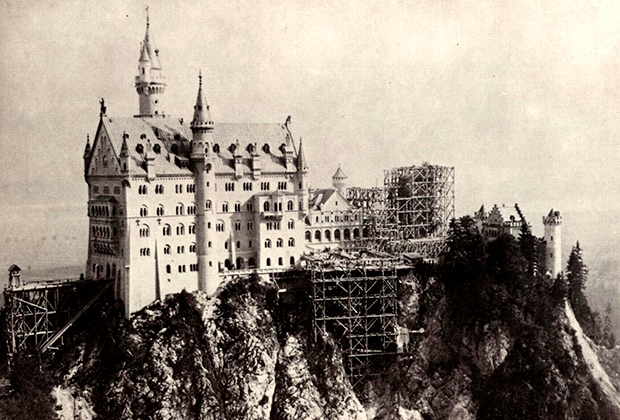 Hohenschwangau’nun inşası sırasında babası Maximilian II gibi, Ludwig II de antik kalıntıların olduğu bir uçurum inşa etmeyi seçti – iki kalenin kalıntıları, Ön ve Arka Schwangau. İnşaattan önce uçurumun tepesi, uçurumun sekiz metre alçaltılması ve deniz seviyesinden bir kilometreden daha yüksek bir plato oluşturması için havaya uçuruldu. Neuschwanstein adlı gelecekteki kalenin ilk taşı Eylül 1869’da atıldı.